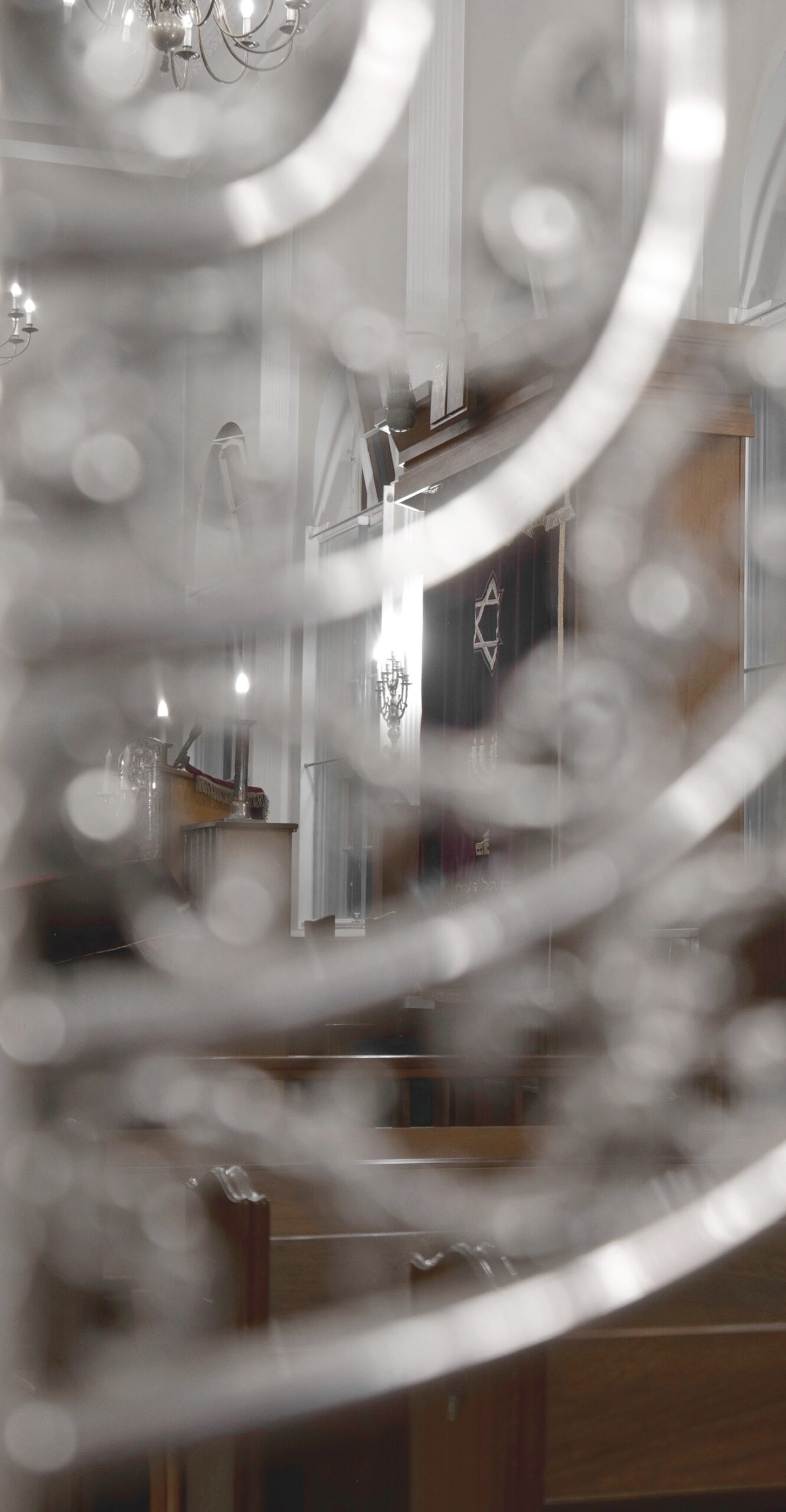 Der vermutlich hohe Grundwasserspiegel am Landwehrkanal veranlasste den Gemeindebaumeister Alexander Beer, den 1916 eingeweihten Synagogenbau und seinen Hauptgebetssaal mit einem Fassungsvermögen von bis zu 2.000 Personen als Hochparterre mit entsprechendem Hochkeller zu konzipieren.1 Dieselben Kellerebenen der alten Synagoge korrespondieren auf eine ungewöhnliche Weise mit der Parklandschaft vor Ort, wie bei der allerersten Begehung des Grundstückes sofort Auffällig wurde. Wahrscheinlich wurden sie nach der Sprengung lediglich mit Erde überschüttet, woraufhin die Natur sie sich – Stück um Stück – zurückeroberte – wie Kay Zareh M.C.D. vermutet.