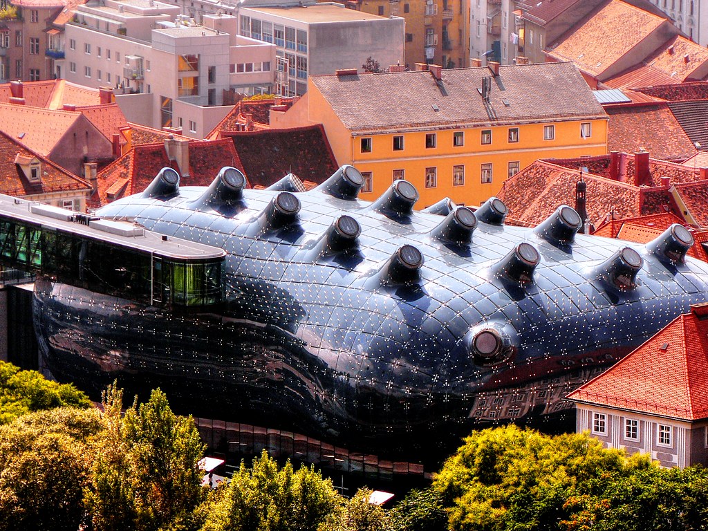 Graz, Kunsthaus am Tage (2003). Photo: Heribert Pohl (Polybert49), Lizenz CC BY-SA 2.0, via Flickr.