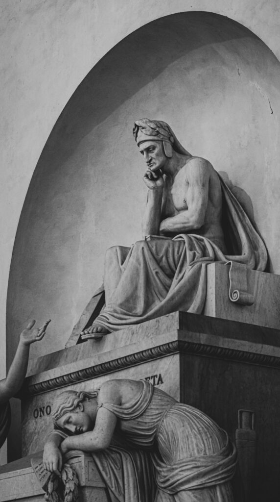 - Dantes Fallhöhe im „Inferno“ ist primär an individuelle Schuldformen wie Verrat und andere Laster gebunden und weniger an abstrakte Verwaltungsmechaniken. Zugleich übt er eine scharfe Institutionskritik am Papsttum, am Ämterkauf und am Machtmissbrauch. Insofern scheint es ihm — aus meiner Sicht — sekundär auch um eine systemische Kritik zu gehen; seine Texte lesen sich wie karikative Abrechnungen mit seinen Zeitgenossen, die er gleichsam in die Hölle einschreibt. ↩︎
